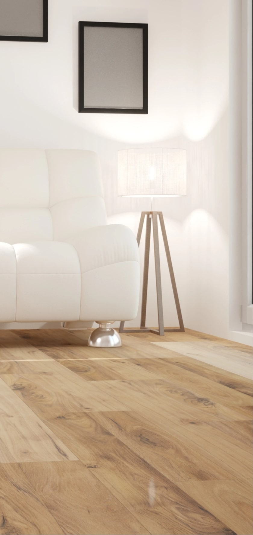 de sol stratifiés de qualité, pensés pour durer et valoriser chaque intérieur, ainsi que de nombreux accessoires (plinthes, seuils de portes, sous-couches).